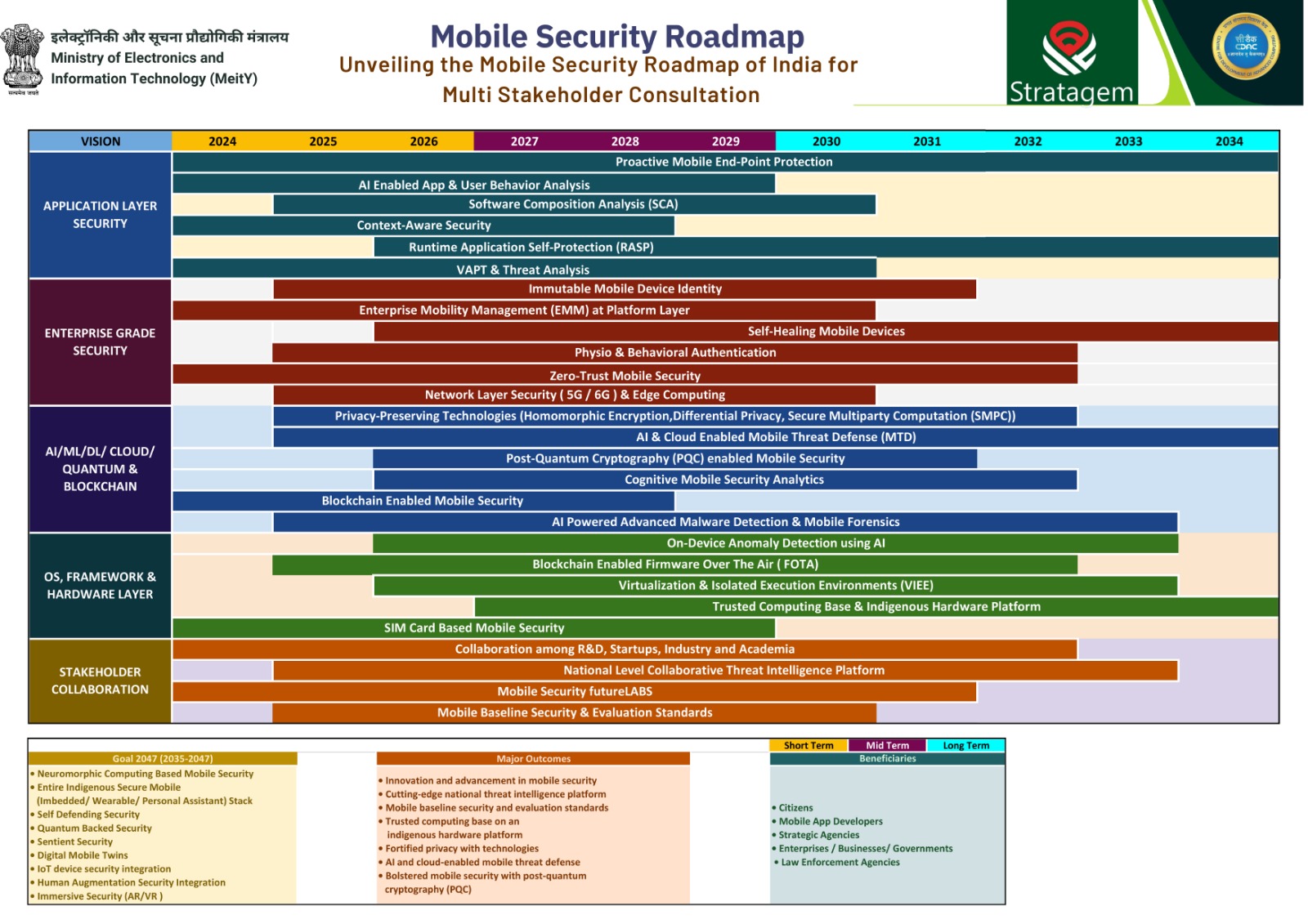 Mobile devices are ubiquitous and essential in India, but they also pose many security challenges from different angles. These challenges include fake applications, data leakage, unsecured Wi-Fi, malware, phishing, spyware, device theft or loss to name a few. These threats can compromise the privacy, integrity, and availability of personal, government and enterprise data. Moreover, these threats can have serious implications for national security, especially because of the dominance of apps and mobile devices coming in from outside the country. Lack of effective analysis tools adds up to this. Therefore, as a country, there is a need to have a roadmap to address these challenges effectively and efficiently while balancing the requirements of various stakeholders, such as citizens, government, strategic agencies, startups, industry, social media platform providers, etc.