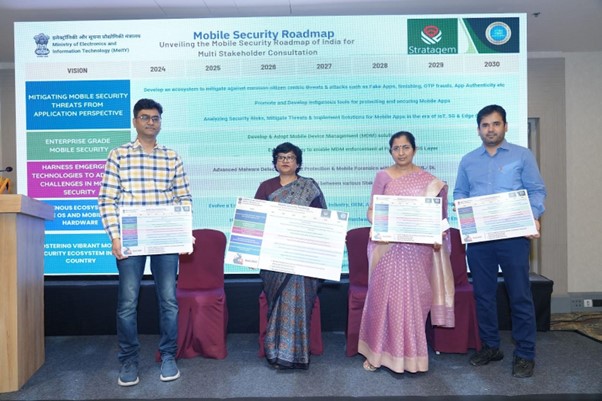 Distinguished Guest Ms. Tulika Pandey, Group Coordinator, Cybersecurity R&D & Scientist G unveiled the draft "Mobile Security Roadmap for Multi Stakeholders Consultation," highlighting the need for the Stakeholder Consultation.