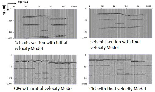 Another application for 2D Migration Velocity Analysis (MVA) using parallel RCGA known as "SeisMVA" has been developed and executed on PARAM Series of supercomputers. This application inverts a 2D velocity model using Kirchhoff depth migration generated common image gathers. Here, we pick the horizons from zero-offset migrated sections and vary only the interval velocities within those boundaries. This application is also very compute intensive like the other two applications. The parallelization approach here is similar to the SEISTOM software.