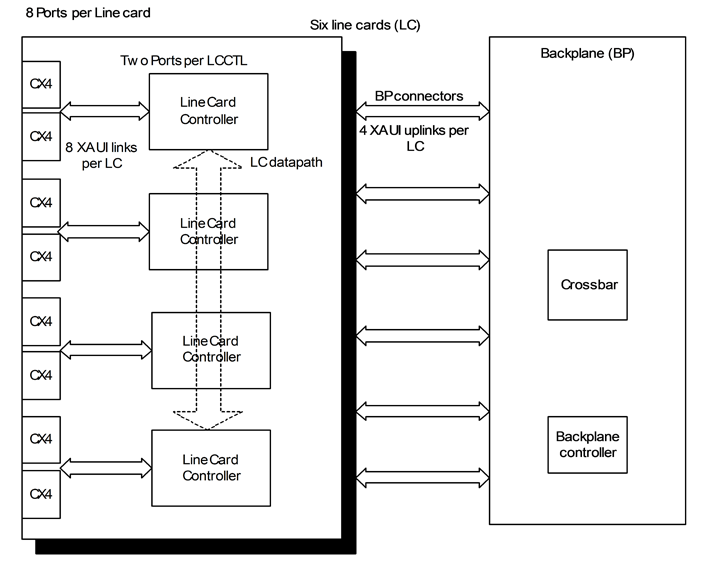 - Each port supporting 10 Gbps, full duplex over CX-4 cables