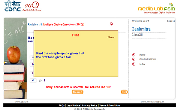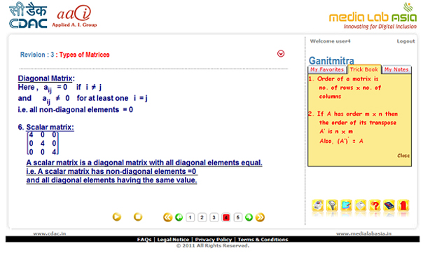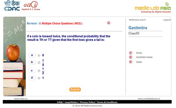 Ganitmitra - the Math Prep Guide [MPG] application for Class XI and XII. Ganitmitra would assist these students to sharpen their Math skills and guide them in their preparations for competitive / entrance examinations where Math is a subject for testing skills. Ganitmitra is developed on internet as well as seamless integration with mobile platform. The application is intended to aid and guide the students with simple tricks; techniques and strategies at solve the Math problems.