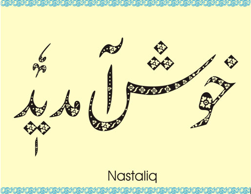 Perso-Arabic scripts, written from right to left, change shape according to the position of the character within the word and a given character or glyph can have as many as two to four shapes. As per tradition there are 8 major schools of Font design and a Kaatib or calligrapher can achieve mastery in these different schools of writing. Of these the two most commonly used are Naskh and Nastaaliq. Minor schools such as Kufi, Maghrebi also exist but are not so widely spread.