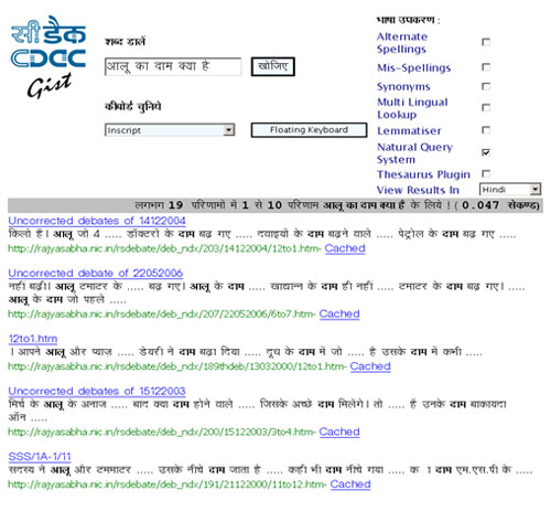This plug-in allows the user to enter query in English and get the search result in desired     language. So it is a boon for people who know English well but do not know Hindi equivalent of the search word. Yet another form of the plug-in transliterates on the fly search result from any language to any other language thereby enabling the user to get the results in desired language