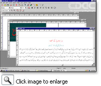 Nashir also allows use of multiple languages simultaneously, which means one can use Urdu, Sindhi, Kashmiri, Arabic and English text, all in one text frame. Style toolbar and popup menus are provided to easily select and apply various languages, fonts, styles, and attributes.