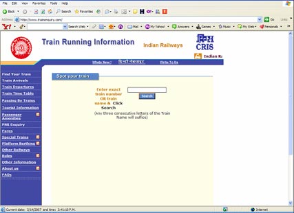 The Major features of the Localized version of the www.trainenquiry.com site are: