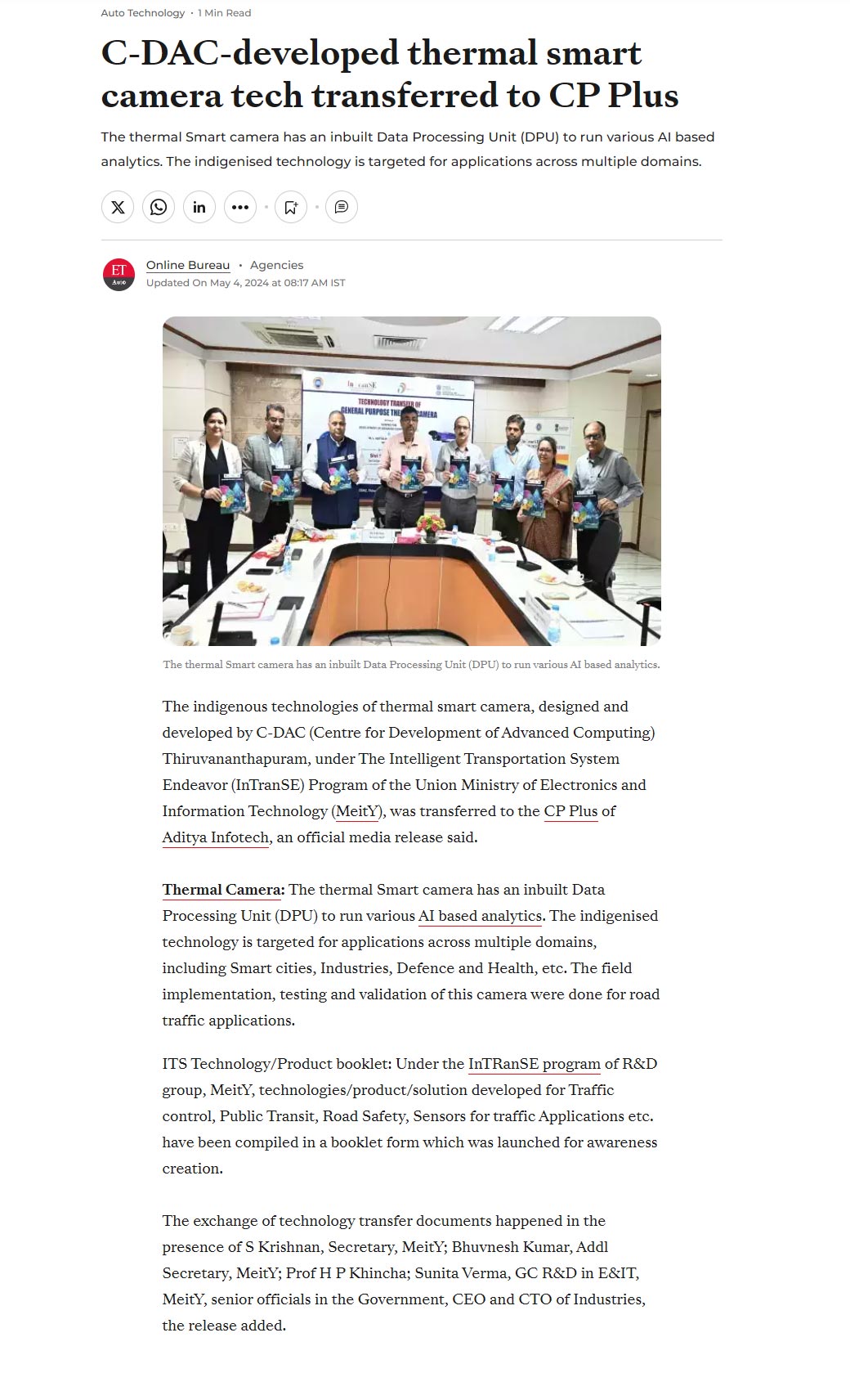 https://auto.economictimes.indiatimes.com/news/auto-technology/c-dac-developed-thermal-smart-camera-tech-transferred-to-cp-plus/109830479