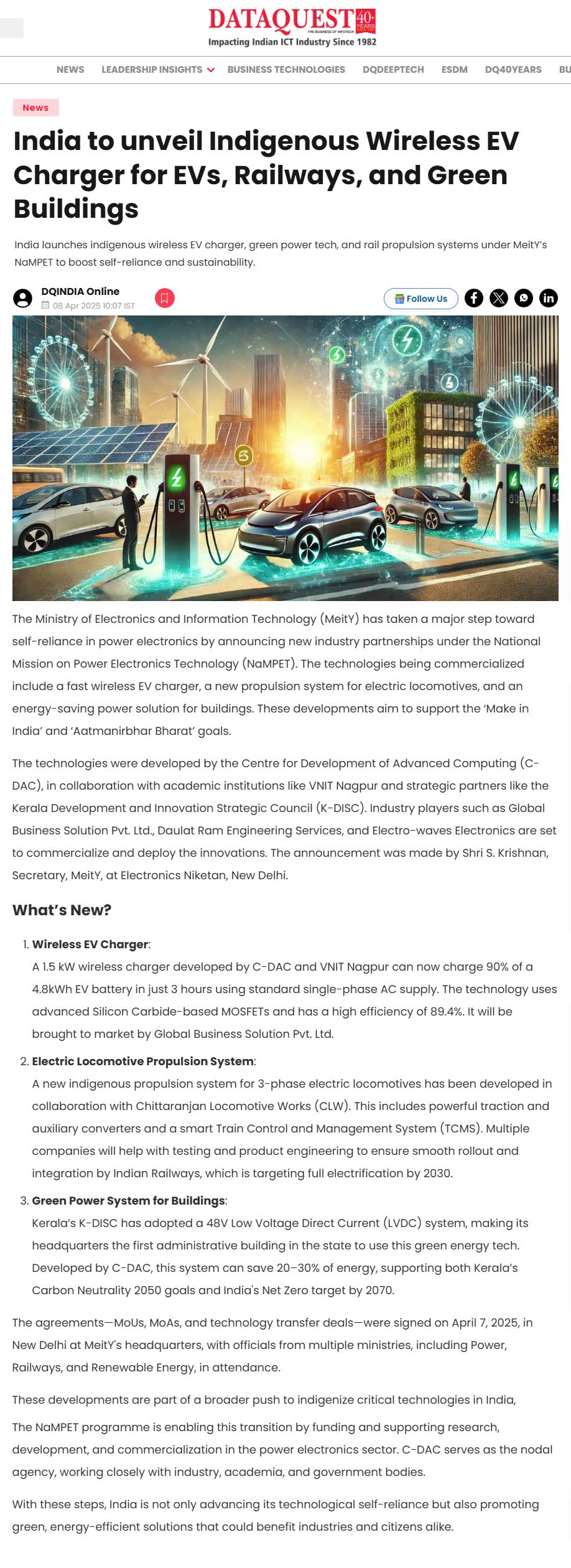 India to unveil Indigenous Wireless EV Charger for EVs, Railways, and Green Buildings