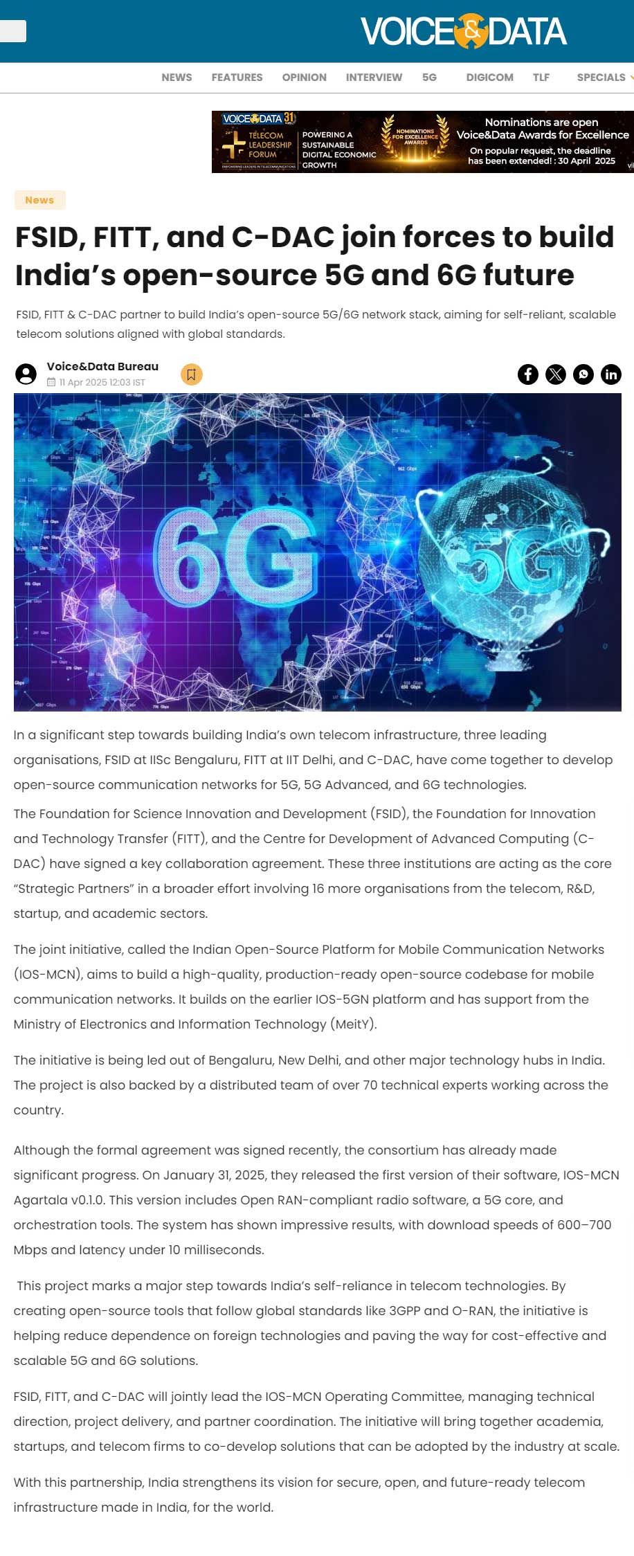 FSID, FITT, and C-DAC join forces to build India’s open-source 5G and 6G future