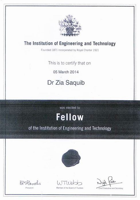 Dr. Zia Saquib is elected to Fellow of the Institution of Engineering and Technology