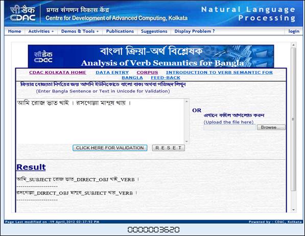 CDAC, Kolkata Language processing team is working in Development of Bangla Sentence Analyser, targeting mainly Bangla to English and Bangla to other Indian Languages translation.