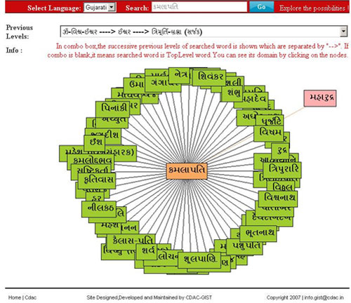 GIST Visual Thesaurus represents thesaurus based word map for the entered word in interactive and easily explorable manner. Its unique and attractive graphical visualization of word map and word net makes it easy tool to use and increases the learning thrust. It allows the word inputting in Unicode for Indian languages. Currently Hindi and Gujarati are supported. It is targeted to one and all who want to replace an idea with a word and also to those who want to explore and learn language.