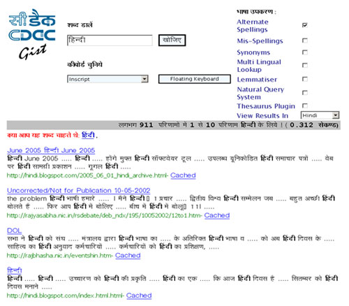 This plug-in allows the user to enter query in English and get the search result in desired     language. So it is a boon for people who know English well but do not know Hindi equivalent of the search word. Yet another form of the plug-in transliterates on the fly search result from any language to any other language thereby enabling the user to get the results in desired language