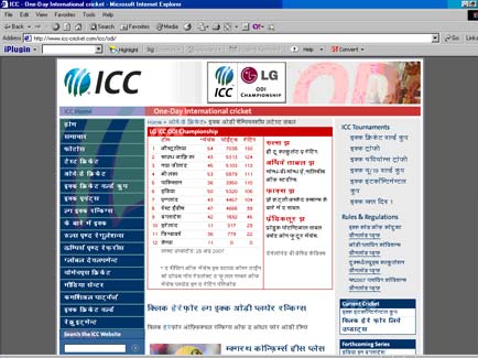 Web users who want to convert a page to their language can do so by using the browser based solutions. At the click of a button the English web page can be converted to various Indian languages like Devanagari, Tamil, Punjabi, etc at the client side. The conversion does not affect the layout or advertisementsof the page. Sample screen shots are shown below.