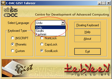 The documents and data created using TAHREER is UNICODE compliant. User can use the application for typing using various layouts (INSCRIPT/ PHONETIC/ CUSTOM) by selecting toggle key (Capslock / Numlock / ScrollLock). The tool also comes with a Virtual Onscreen Floating keyboard for easy typing using mouse.