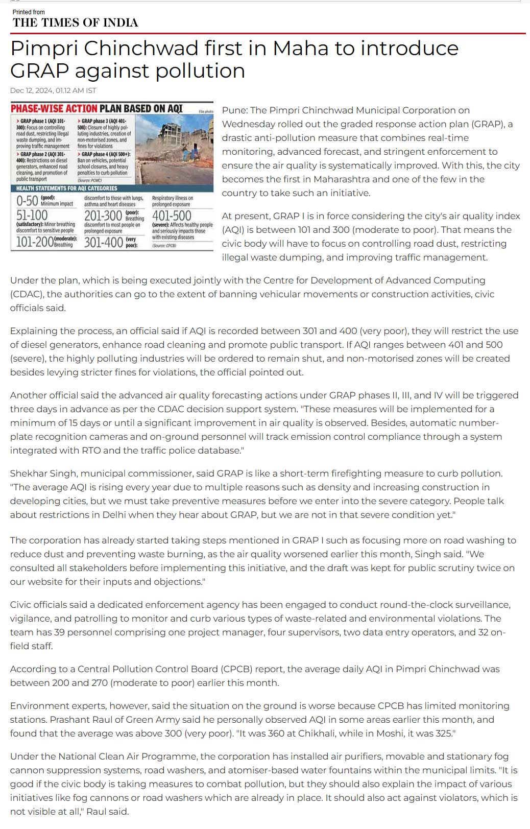 Pimpri Chinchwad first in Maha to introduce GRAP against pollution