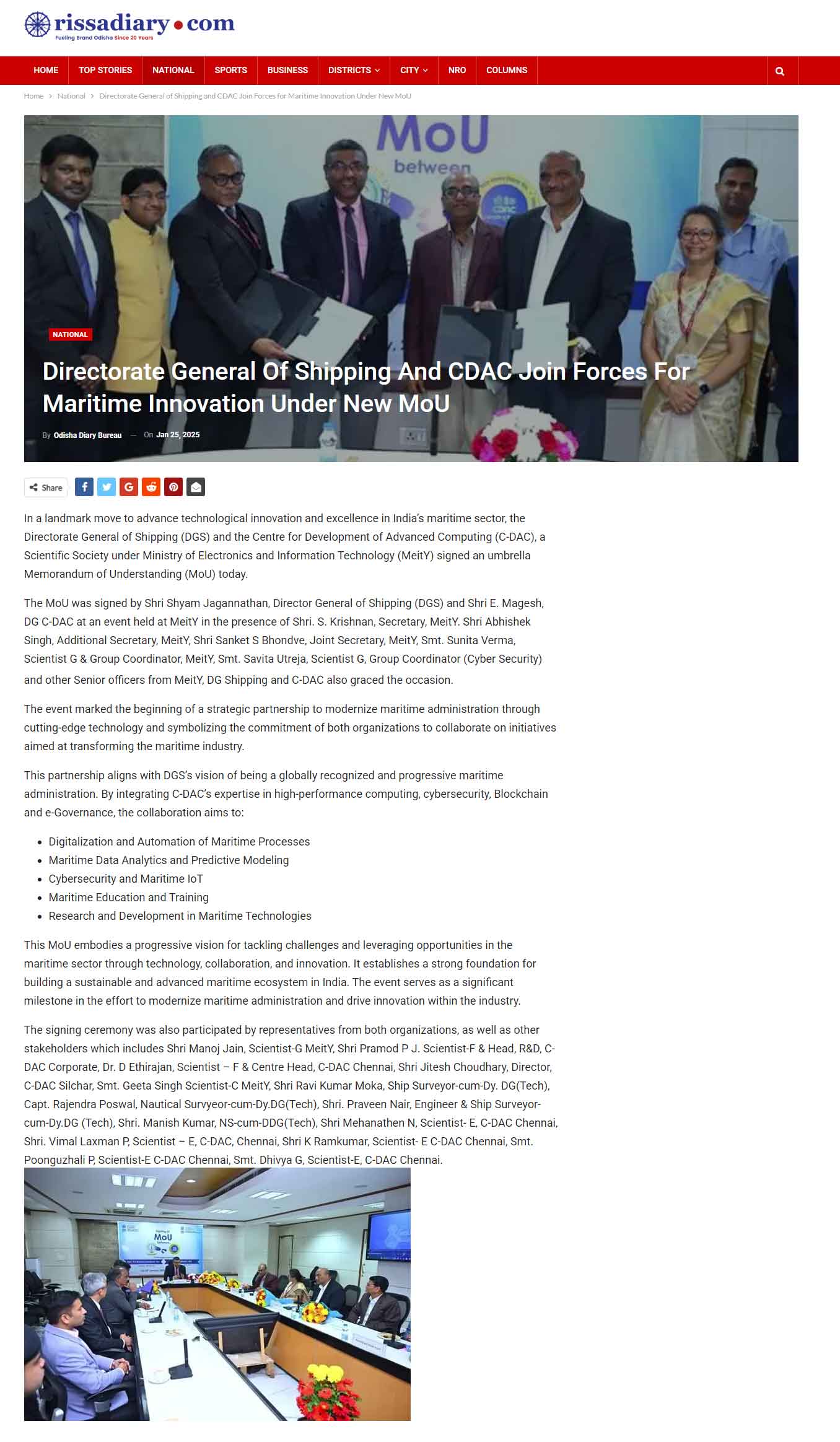 Directorate General Of Shipping And CDAC Join Forces For Maritime Innovation Under New MoU