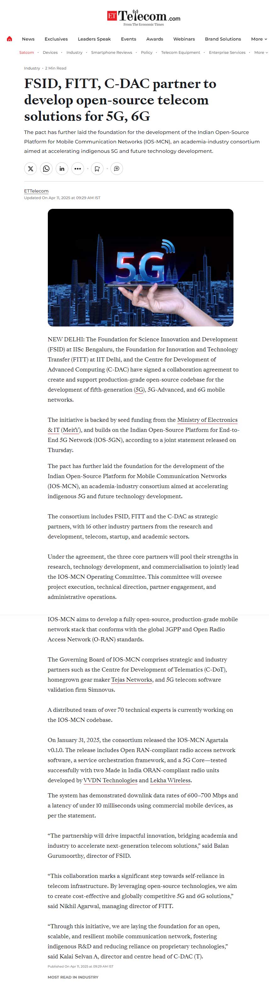 FSID, FITT, C-DAC partner to develop open-source telecom solutions for 5G, 6G